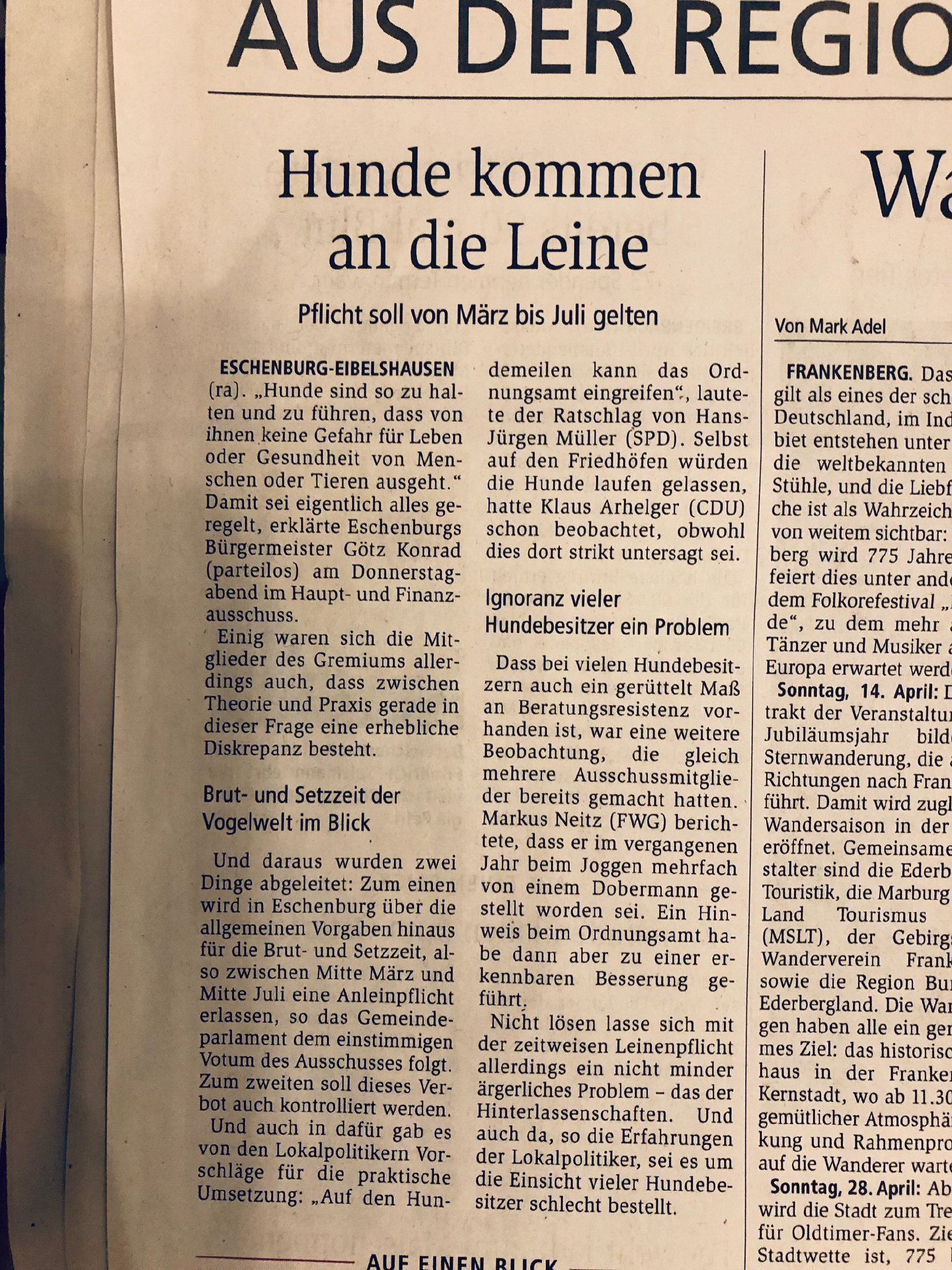 Bitte liebe Hundehalter, nehmt Rücksicht auf andere. Nur so wird es in Zukunft ohne dauernde Verbote funktionieren. Niemand von uns möchte doch selbst Hundehaufen vor der eigenen Türe, oder möchte von anderen Hunden angesprungen oder belästigt werden, niemand von uns möchte dass ein Hund unser Kaninchen oder Meerschweinchen im Garten räubert usw.